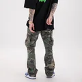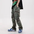 Top Men and Women Hip-hop Camouflage Splash Flared Pants Pockets Drawstring Loose Cargo Pants Streetwear Baggy Trousers